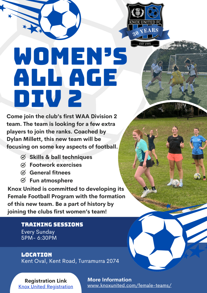 Join us and have a lot of fun playing football with Knox United FC.